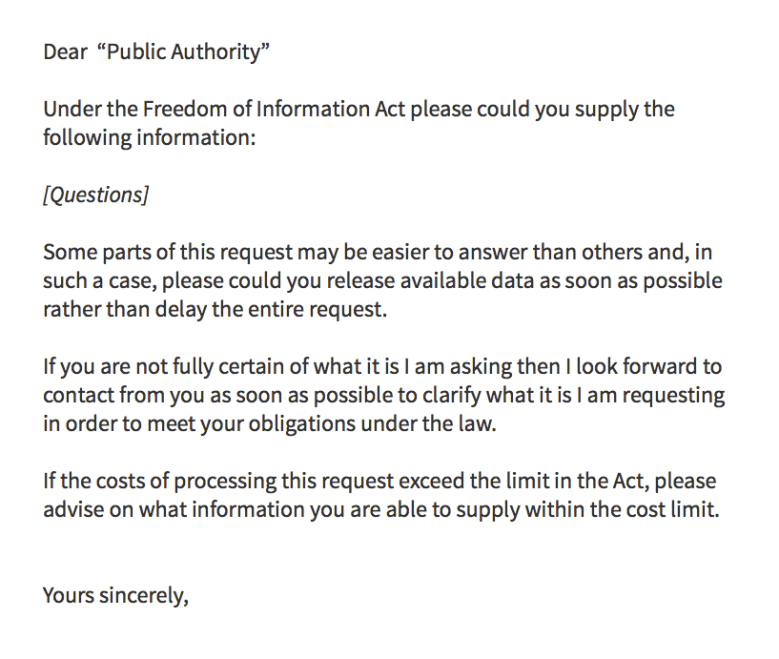 Here is the below template Freedom of Information request – please feel free to download and use.